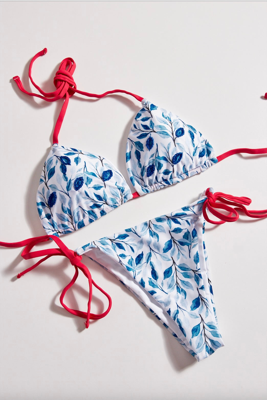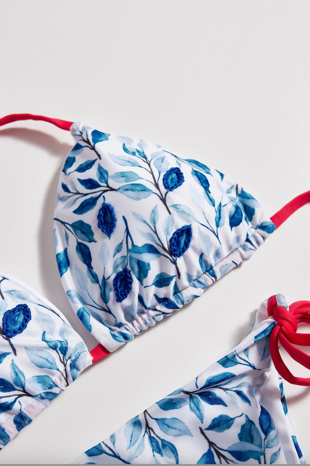 • Parte superior: Top de triangulo con libre amarre y bordado, push up.